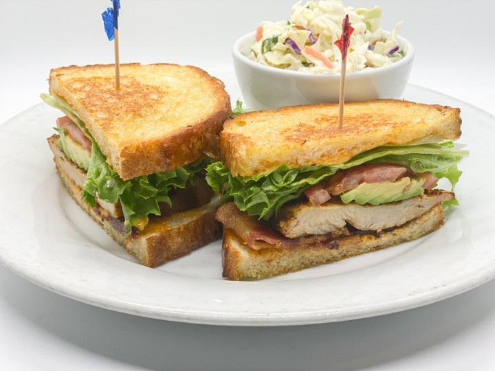 Charbroiled natural breast, lettuce, tomato, pickle, onion, avocado on thick cut sourdough